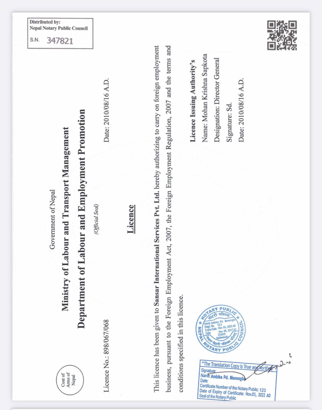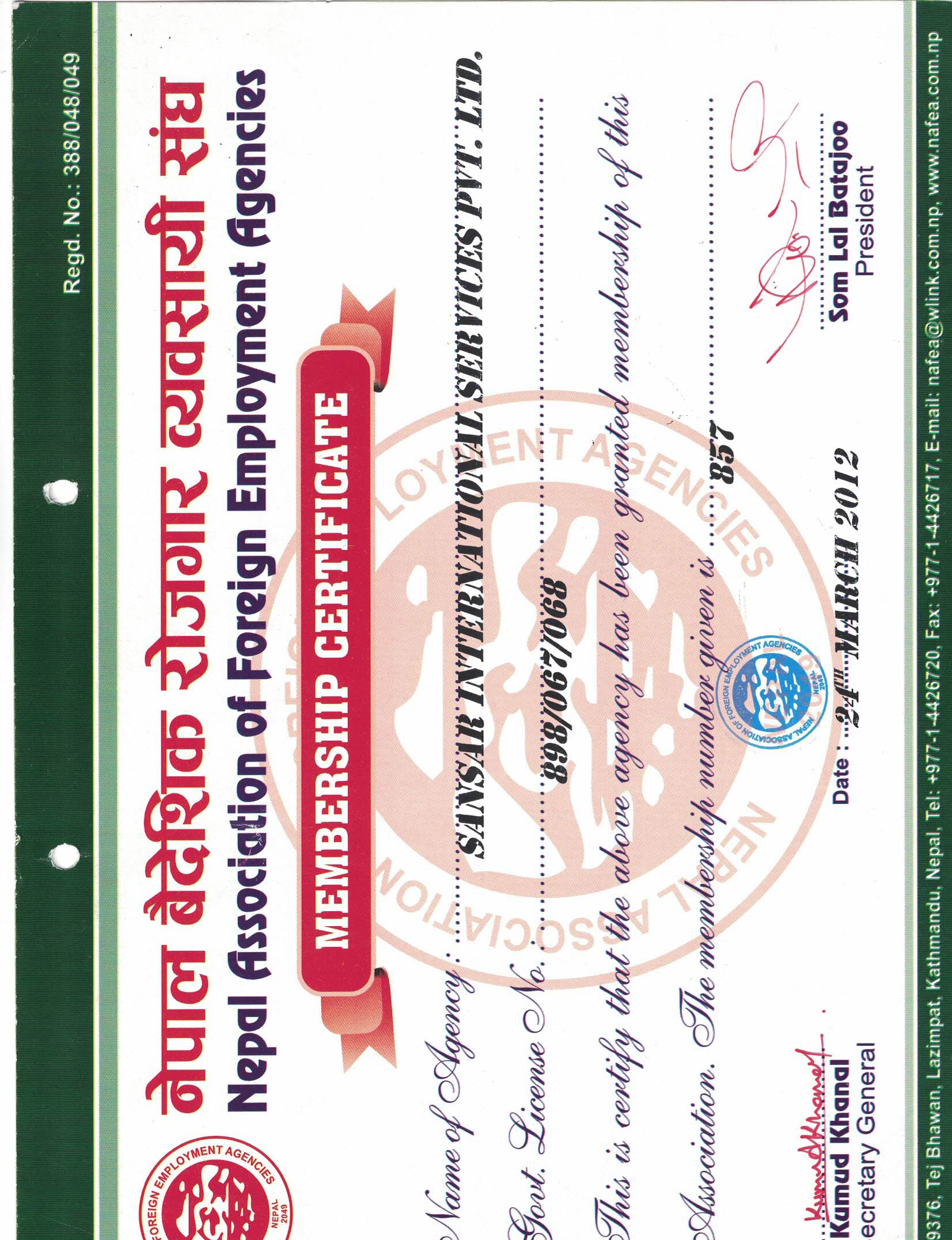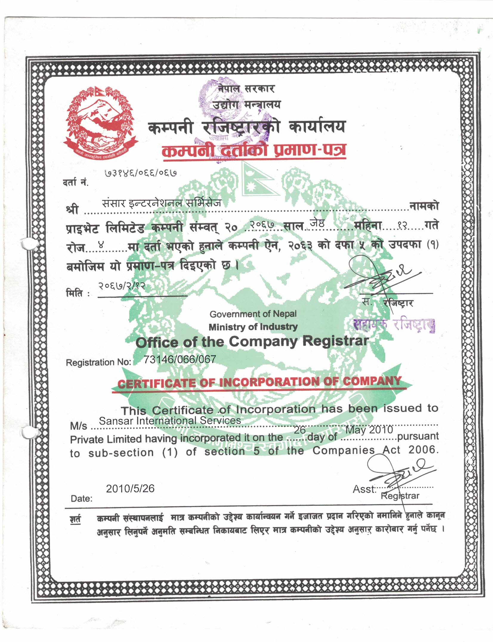 Sansar International Services Pvt. Ltd.